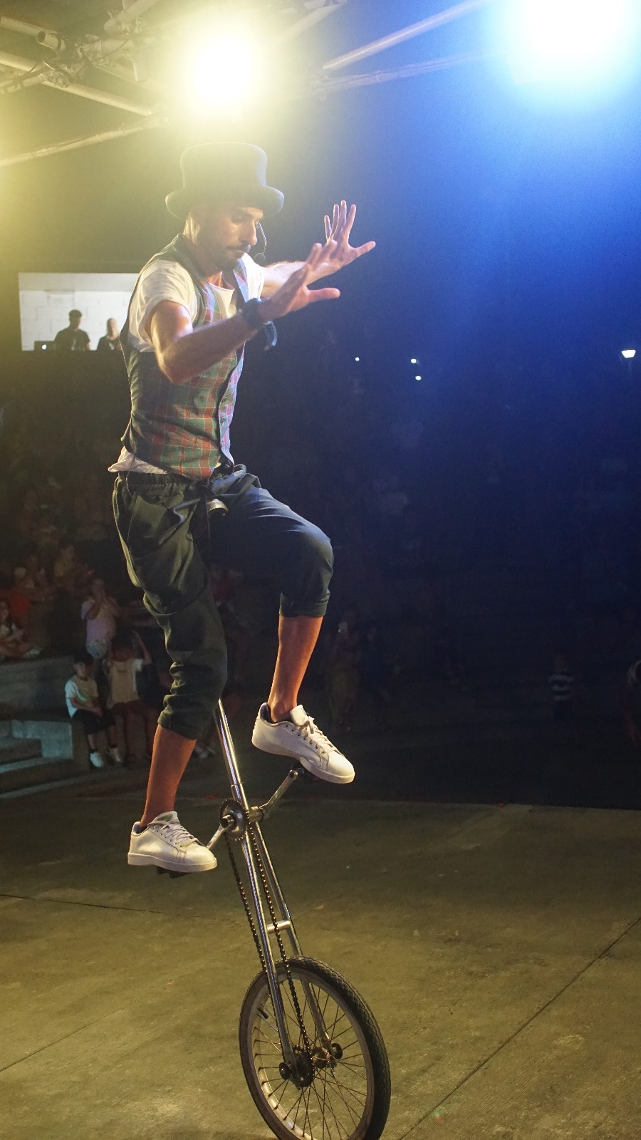 Non può mancare la giocoleria sul Monociclo, ovvero, la bicicletta ad una ruota, quella è un’esibizione poetica e allo stesso tempo, molto atletica, dovendo stare in equilibrio, per più tempo.